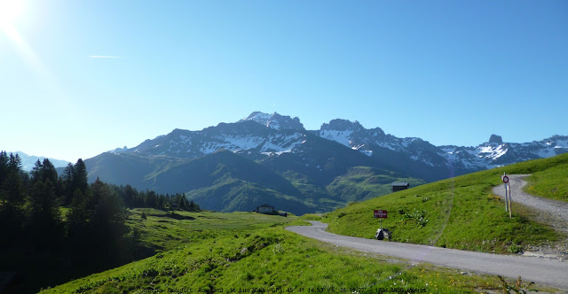 Les alpages sont magnifiques mais peu de Marmottes mis à part celle qui m'a coupé la route en sortie d'épingle tout à l'heure.
