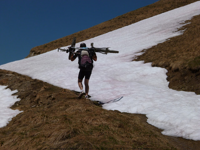 Et puis y'a des éboulements aussi, alors on repousse dans les cailloux, bientôt le col !