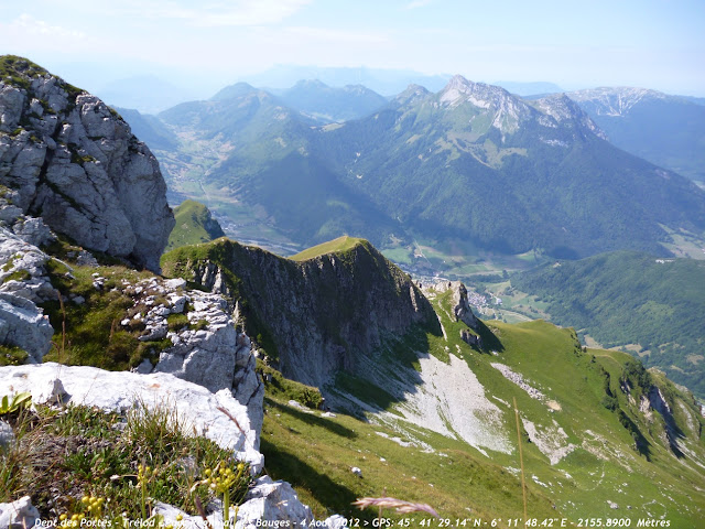 La traversée vers le Trélod par les crêtes, je ne prendrais pas ici et préfère assurer en descendant coté Est , seul je ne prend pas de risque. Au fond à droite la Dent de Rosannaz et le Colombier , tandis qu'a gauche de la crête, au fond, se dresse la dent d'Arclusaz