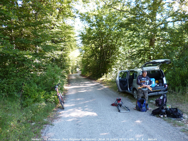 Lundi 30 juillet: 4h50 du matin , tous le matériel est chargé dans la voiture. Tentes, Sacs de couchage, nourriture, réserves d'eau, glacière etc... Nous préparons tout depuis plusieurs semaines, l'itinéraire est enfin prêt. Bien plus que 2 randos VTT , c'est surtout l'occasion de partager de super moments entre potes sur des terrains encore inconnus et aussi sauvages que nos montagnes Savoyardes. Tant qu'a découvrir le Vercors , autant le faire dans sa partie la plus vierge, qui est la réserve naturelle des Haut Plateaux. Nous partirons dans un peu plus de deux heures de Saint-Agnan en Vercors après avoir trouvé un petit coin tranquille, quelque part sur la route forestière montant au col du Souillet. Nous y passerons la soirée , puis la nuit autour d'un petit feu de camp ....mais avant tout ça.... Autoroute direction Grenoble puis Lans en vercors puis......St Agnan.