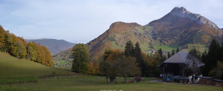 Le Roc des Boeufs au centre, le col de la Frasse à droite .
